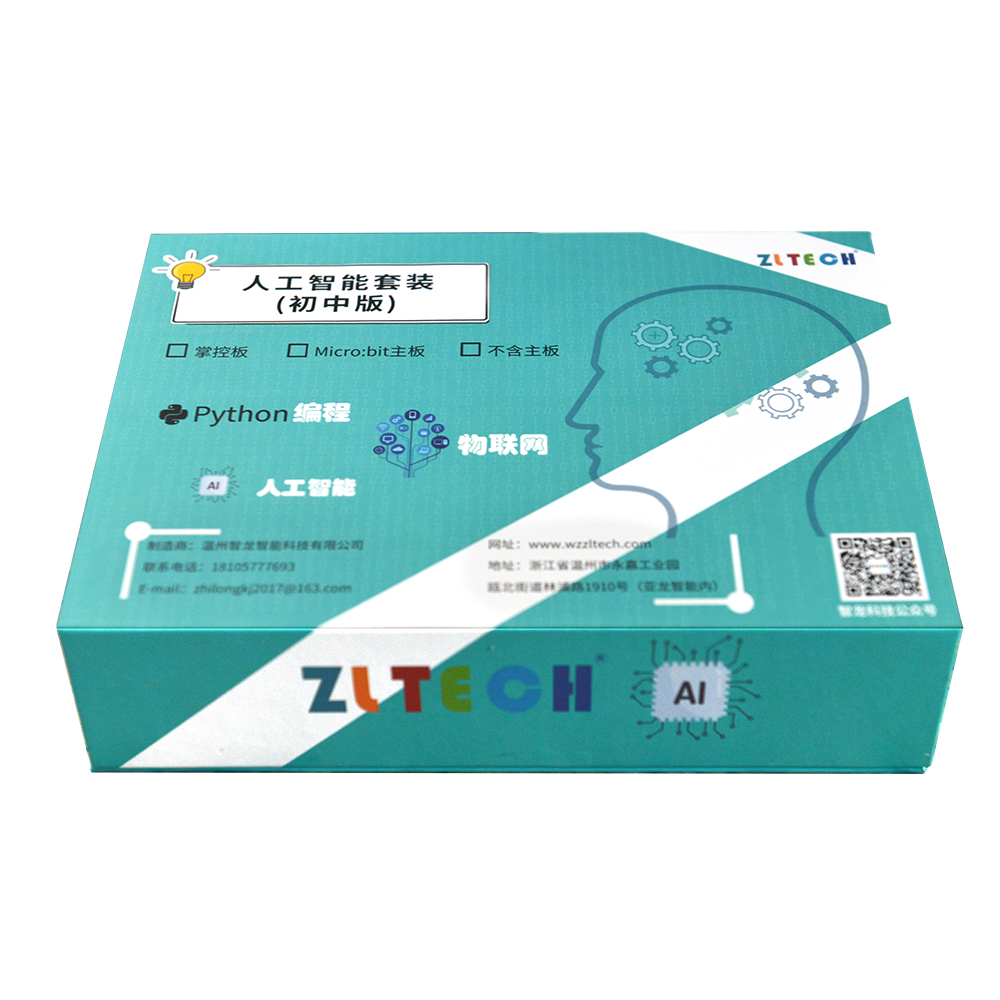 人工智能基礎(chǔ)套裝是智龍科技推出的一體化教學(xué)實驗箱,以掌控板作為主控核心,集成了RGB彩燈、溫濕度、光線、人體紅外、煙霧、水滴等傳感器,再通過按鍵、舵機(jī)、直流風(fēng)扇以及拓展接口的聯(lián)動來完成大多數(shù)的物聯(lián)網(wǎng)教學(xué)和案例原型開發(fā),諸如RGB流水燈、環(huán)境光檢測、溫濕度計、煙霧報警、語音控制等案例案例開發(fā)。