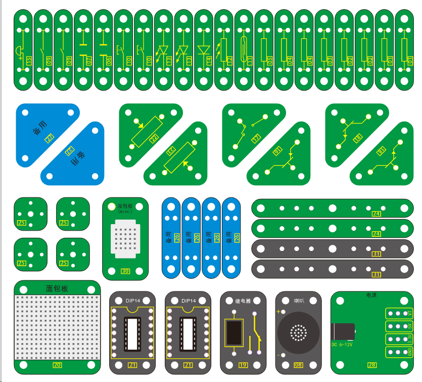 其次由分立元件由洞洞板焊接組成的案例包括:1組裝與測(cè)試指紋鎖電子控制系統(tǒng)模型、2制作土壤濕度測(cè)試器、3制作簡(jiǎn)易水質(zhì)探測(cè)儀、4制作簡(jiǎn)易光控延時(shí)燈電路等實(shí)驗(yàn)。