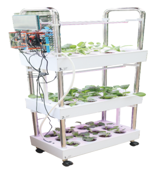基于環(huán)境數(shù)據和用戶設定,系統(tǒng)能自動調節(jié)RGB植物燈光的強度、顏色和亮燈時長,控制水泵的灌溉量和頻率,以及風扇的換氣速度,模擬實現(xiàn)精細化的衣作物生長管理。