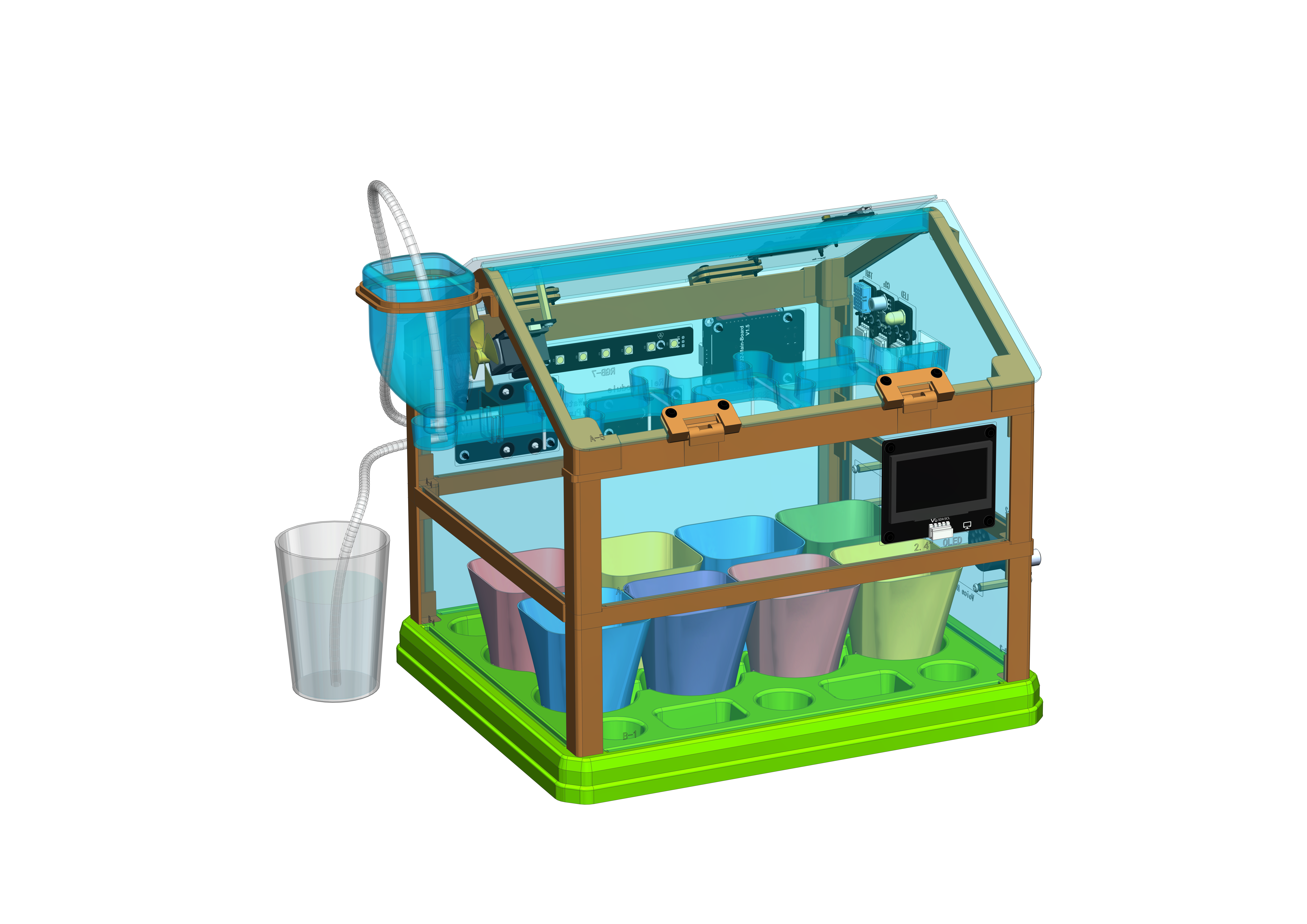 AI智慧農(nóng)場語音擴(kuò)展包主要是在AI智慧農(nóng)場基礎(chǔ)套裝的基礎(chǔ)上,增加了相應(yīng)的人工智能編程交互模塊以及場景搭建結(jié)構(gòu),能夠繼續(xù)在原來的套裝基礎(chǔ)上進(jìn)行同一塊主控板的擴(kuò)展編程設(shè)計(jì),以及外觀結(jié)構(gòu)的兩層搭建。整體場景可實(shí)現(xiàn)人工智能語音交互控制、物聯(lián)網(wǎng)手機(jī)APP通過WIFI進(jìn)行遠(yuǎn)程控制,以及人體交互感應(yīng)控制等功能,套件所含的所有傳感器可整體同時(shí)一起連接在1塊主板上進(jìn)行功能實(shí)現(xiàn)